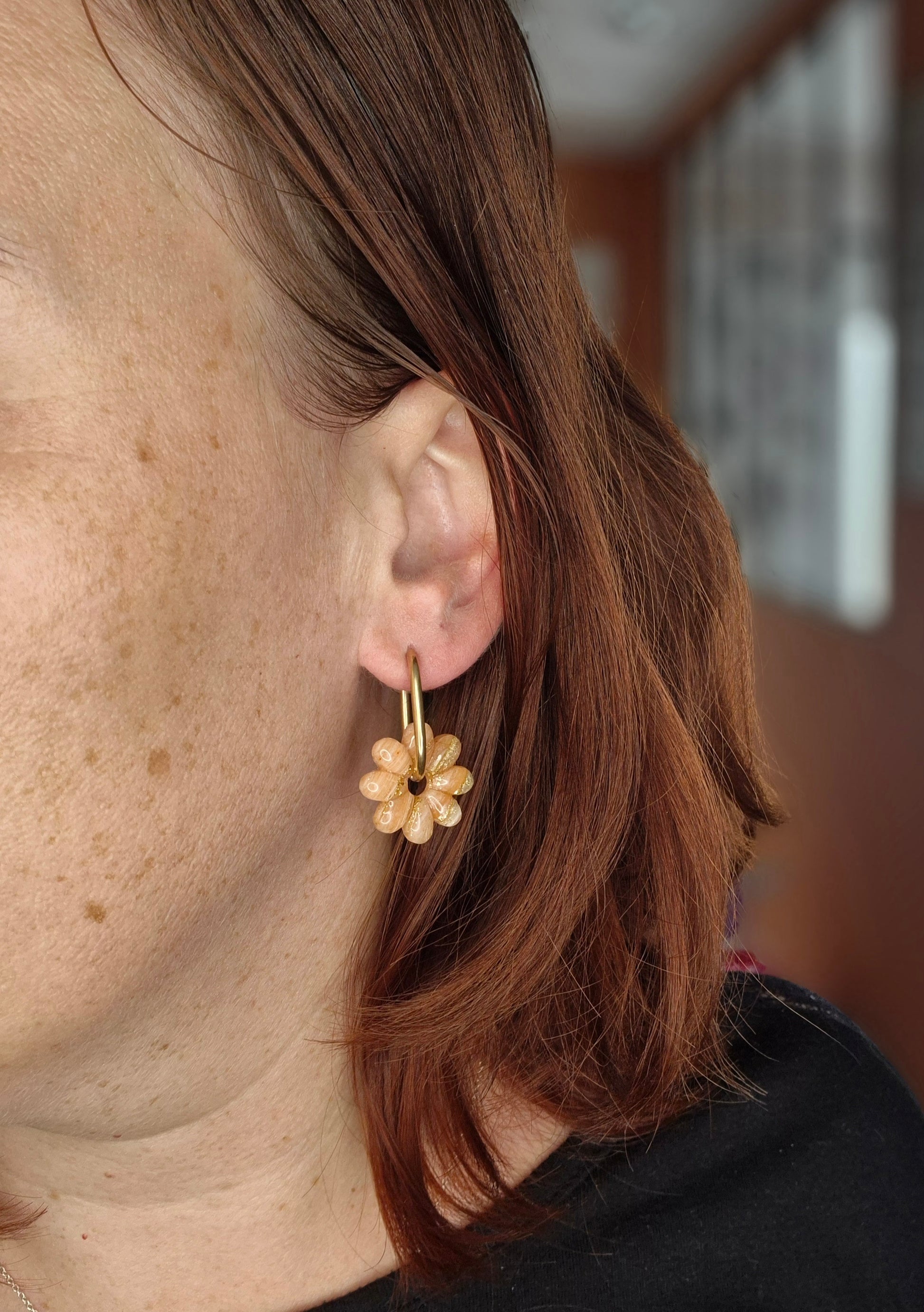 La pampille Amalia apporte un charme fleuri et lumineux à tes boucles d’oreilles interchangeables. Sa forme de fleur aux pétales bombés capte la lumière et donne du relief à chaque mouvement.