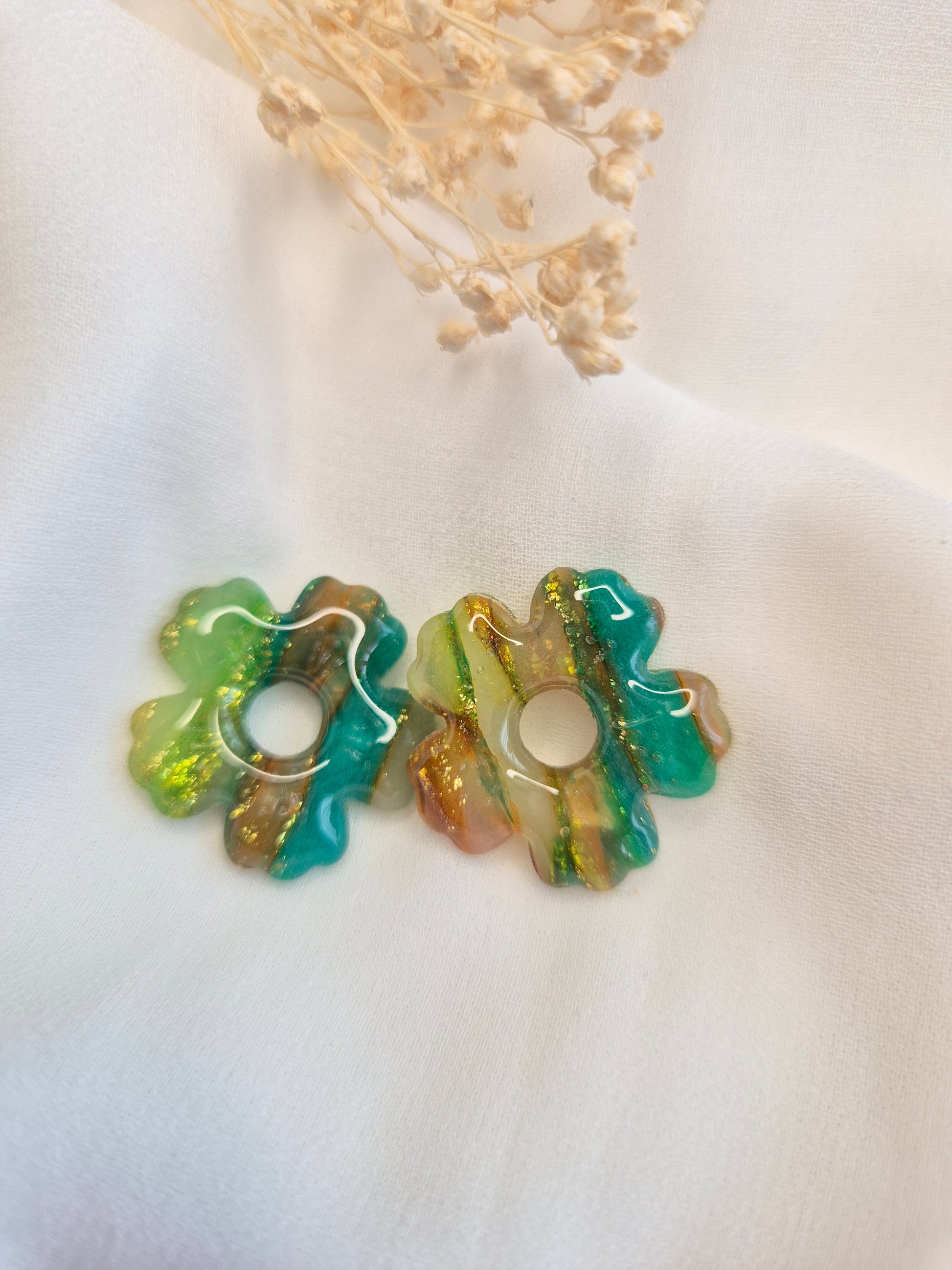 Les Pampilles Capucine apportent une note florale et pétillante à vos créoles. Leur forme fleur délicate, réalisée en pâte polymère et résine, reflète la lumière avec élégance et originalité.